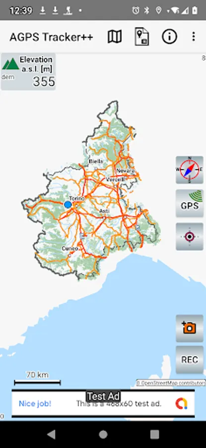 MAPS: The geographic maps used by AGPS-Tracker++ are offline, free maps created and maintained by the OpenStreetMap project (“©Openstreetmap-contributors). These maps are compressed in files with extension “.map” and may be downloaded using A-GPS Tracker++. The first time you run the app your archive is empty and you will be invited to select the map of your country and transfer it to your local archive. You can always download other map files, of other countries, into your local folder.