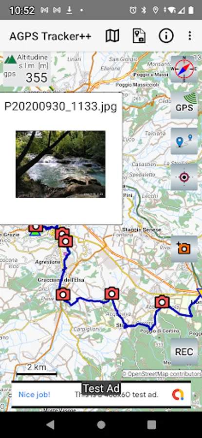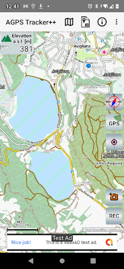 If you keep pressed a point on the map and you have already downloaded the DEM for this area, then you will see the contour lines created by A-GPS Tracker++ around the touched area.