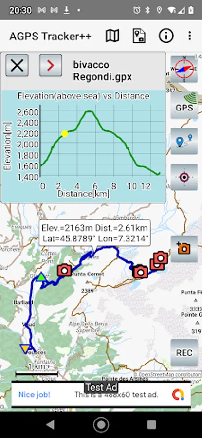 3. Add a new POI either assigned to a point on the MAP or to a point on the track.