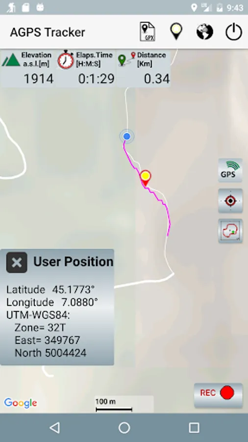 GPS is used here as a generic term and refers to the capability to receive position data from signals received from satellites. Modern phones can obtain position data from more than one satellite system, i.e. not only the american GPS but also GLONASS, BeiDou and Galileo. A-GPS Tracker will receive data from all the available satellite navigation systems. In addition A-GPS (Assisted GPS) also uses ground sources like cell tower data and WiFi, that may enhance quality and precision when in poor satellite signal conditions and in particular will help to reduce time to start fixing initial position. GPS will be the source of the more accurate position: Latitude, Longitude and Altitude. Note that for hikers Altitude it is of particular importance and can be given only by GPS.