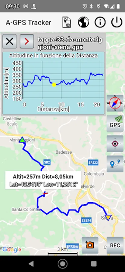 - A track is stored in a GPX file. It can be recorded, stored or loaded to/from memory and shared with other people. Its Elevation vs Distance profile can be shown on the screen.