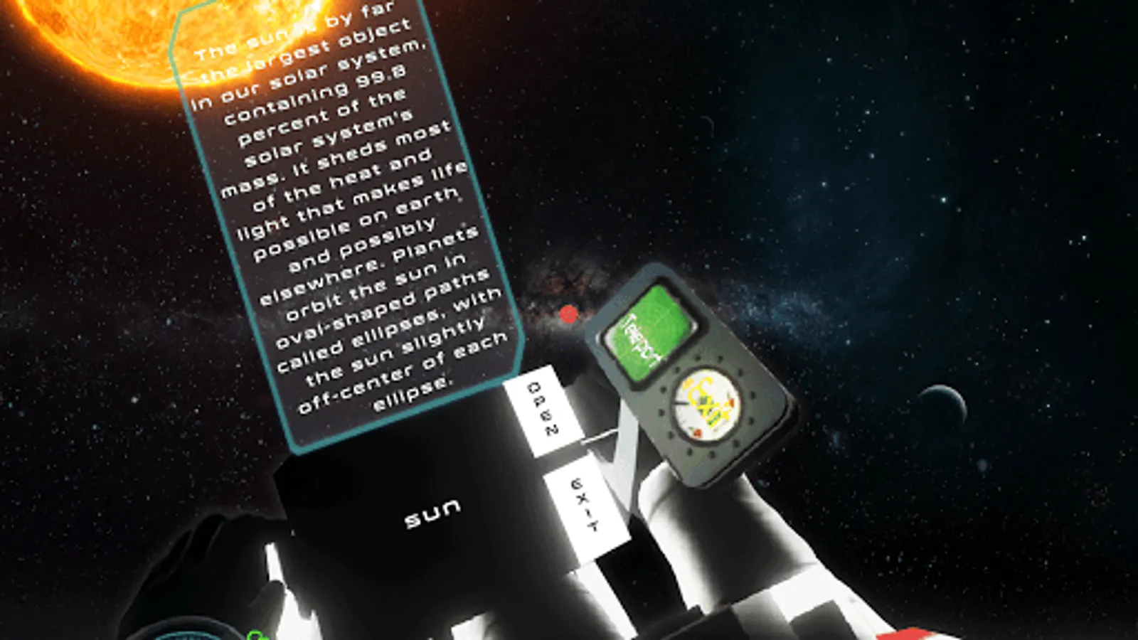Doesn't matter if you like astronomy or want to learn about space this app will help you and take you to a beautiful journey of our Solar system. Explore the solar system in a virtual reality environment and learn about planets.