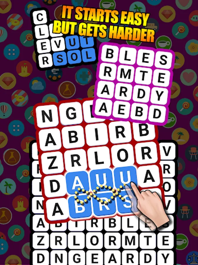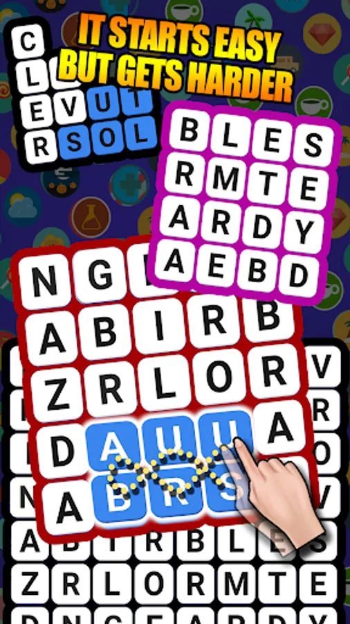 Find hidden words, swipe your finger over them, and see the puzzle collapse.