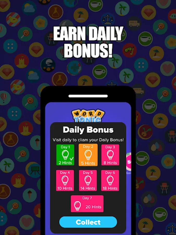 % Find as many words as possible to unlock levels and earn extra bonus coins.