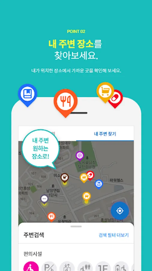 Through the location-based service, you can check the convenient facilities near the place where you are located.