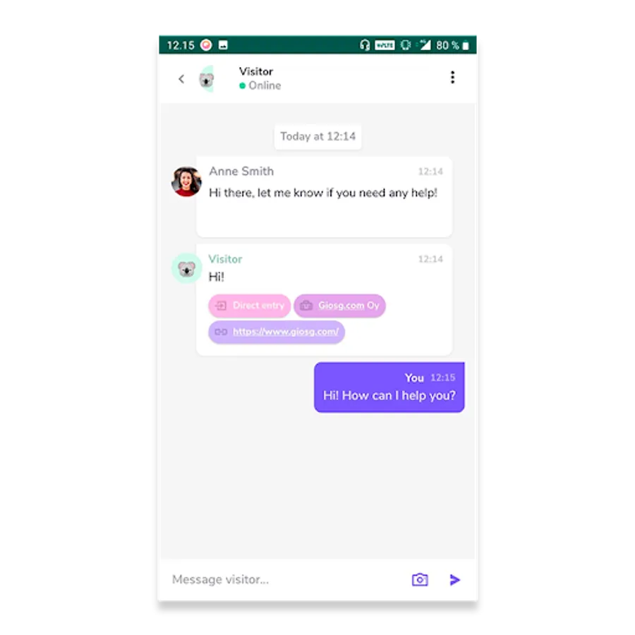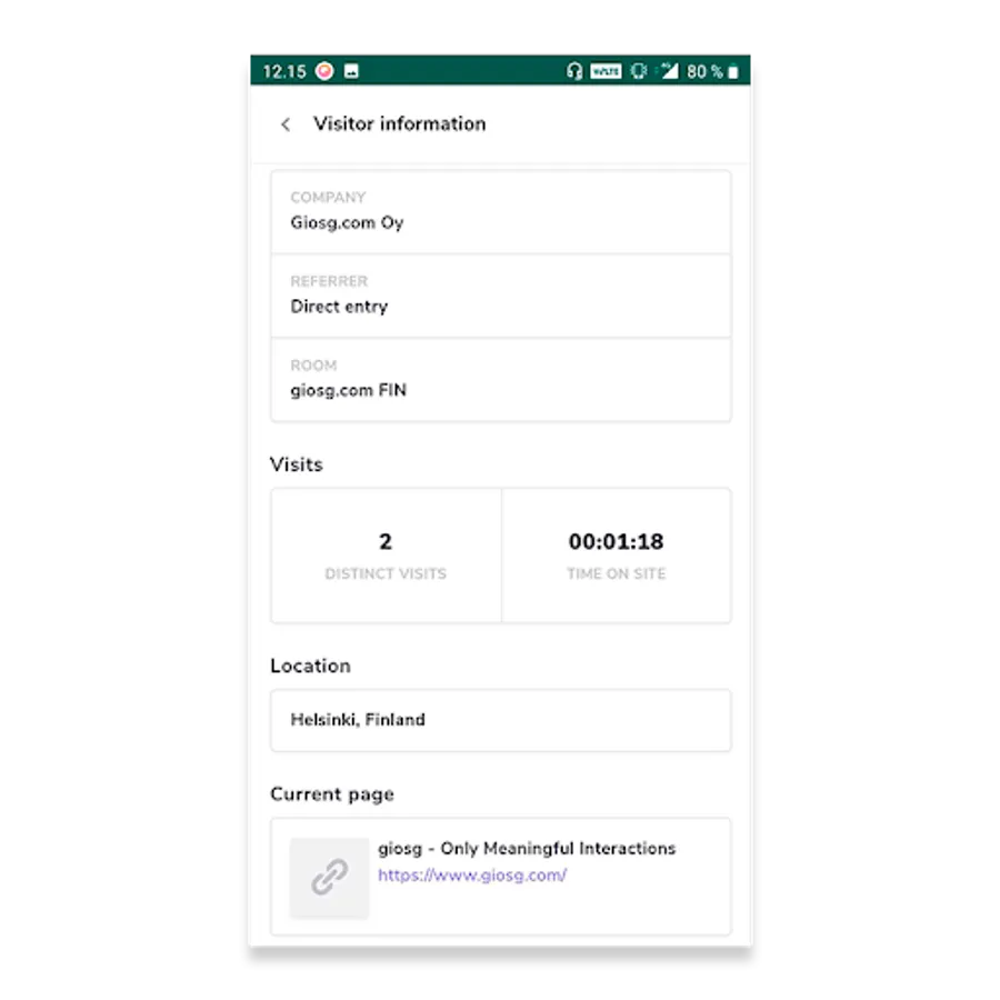 Stay connected with your current and potential customers even if you are on mobile. With giosg you can have meaningful conversations and chat with your customers wherever you are and whenever they need you. Invite colleagues to your chat conversation and turn your notifications on and never miss a chat. Enjoy all this while giving your conversations context with real-time visitor information.
