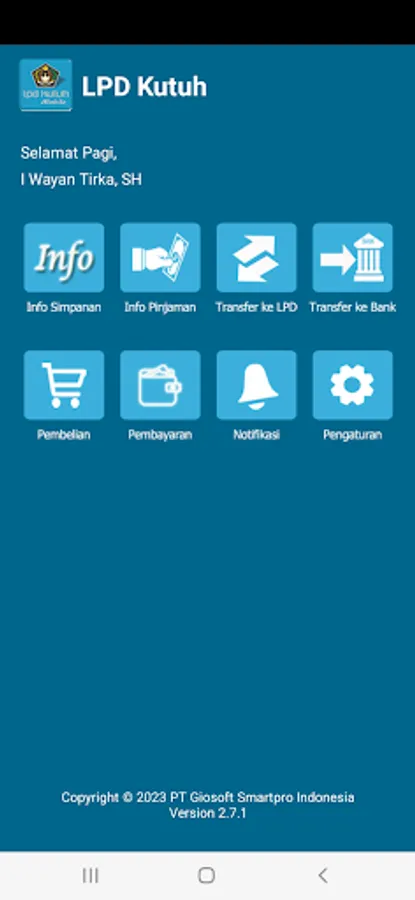 LPD Desa Adat Kutuh Badung - Bali, in this era of digitalization wants to participate in and provide full service and transparency to LPD customers so they can transact online through the LPD mobile banking application. Through this application, customers can make transfers between accounts at LPD Canggu and transfers between banks in real time. LPD customers can also check savings balances and view transaction history of voluntary savings, Sukla savings, Siwajar savings, deposits and loans. And LPD customers can purchase mobile credit and prepaid PLN as well as make payments for postpaid mobile phones, telephones, postpaid PLN, PDAM, BPJS and other products.