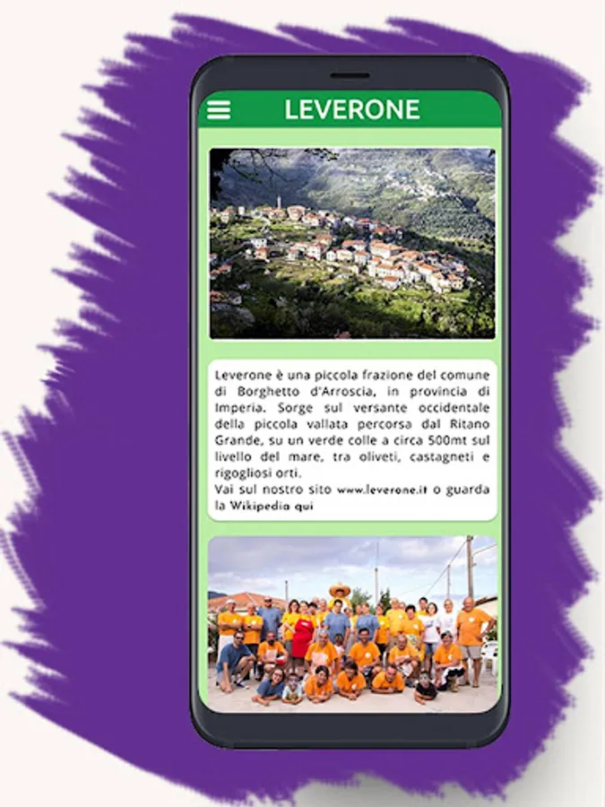 Not even New York has its official APP .... and I looked for it. Leverone is a small fraction of the municipality of Borghetto d'Arroscia, in the province of Imperia. It rises on the western side of the small valley crossed by the Ritano Grande, on a green hill at about 500m above sea level, among olive groves, chestnut groves and luxuriant vegetable gardens.