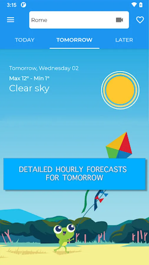 Frog weather is a simple and funny weather forecast application that provides reliable forecast and always gives you a good mood, even in bad weather.