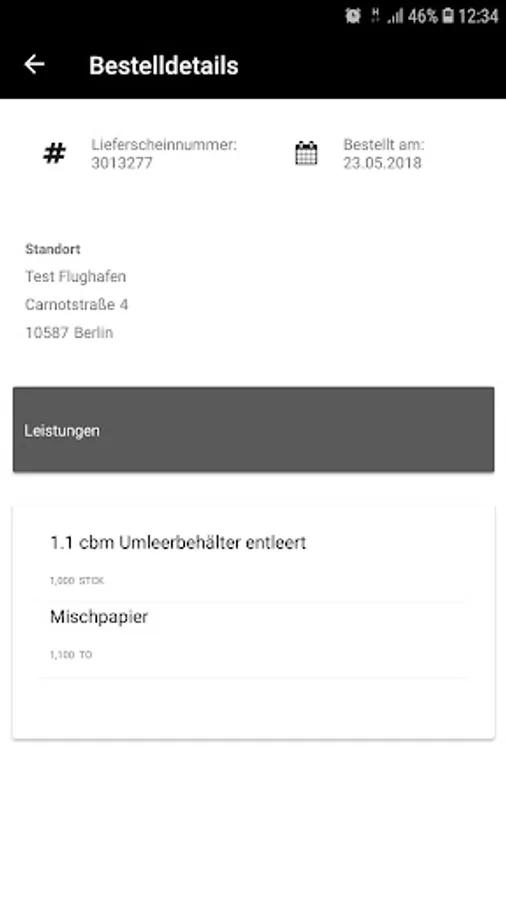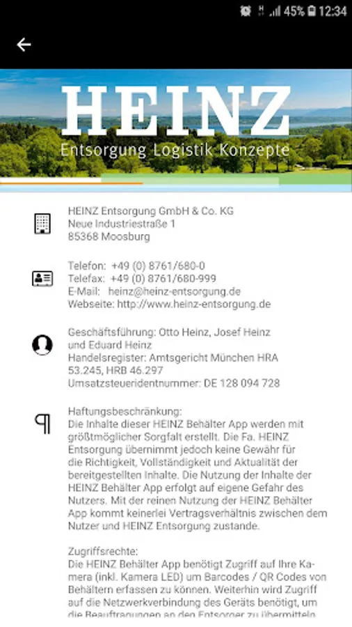 The app allows the commissioning of emptying the container the company HEINZ disposal.
