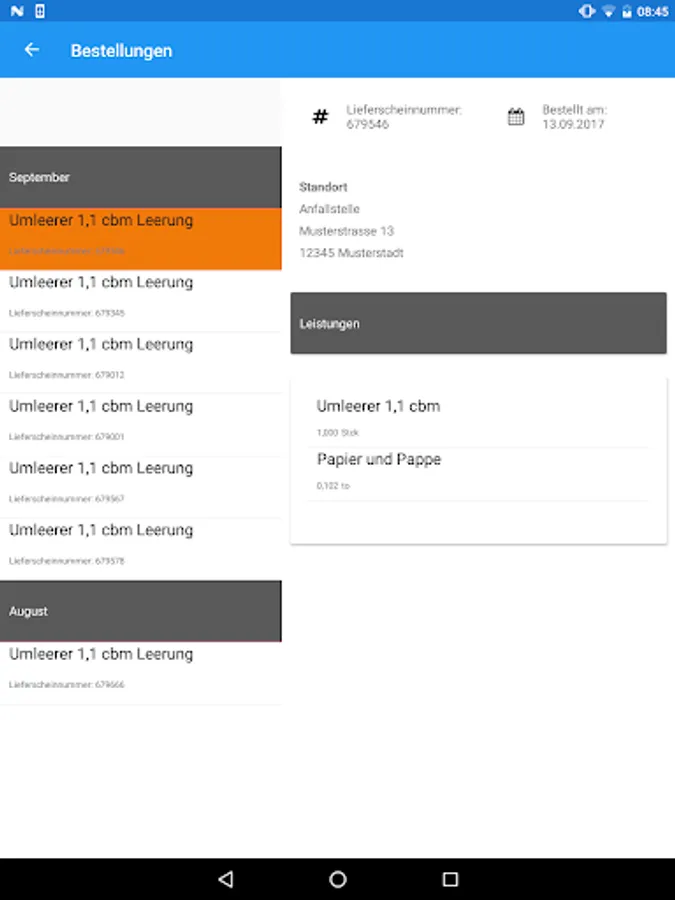 This app enables you to order emptying orders from your waste disposal company.