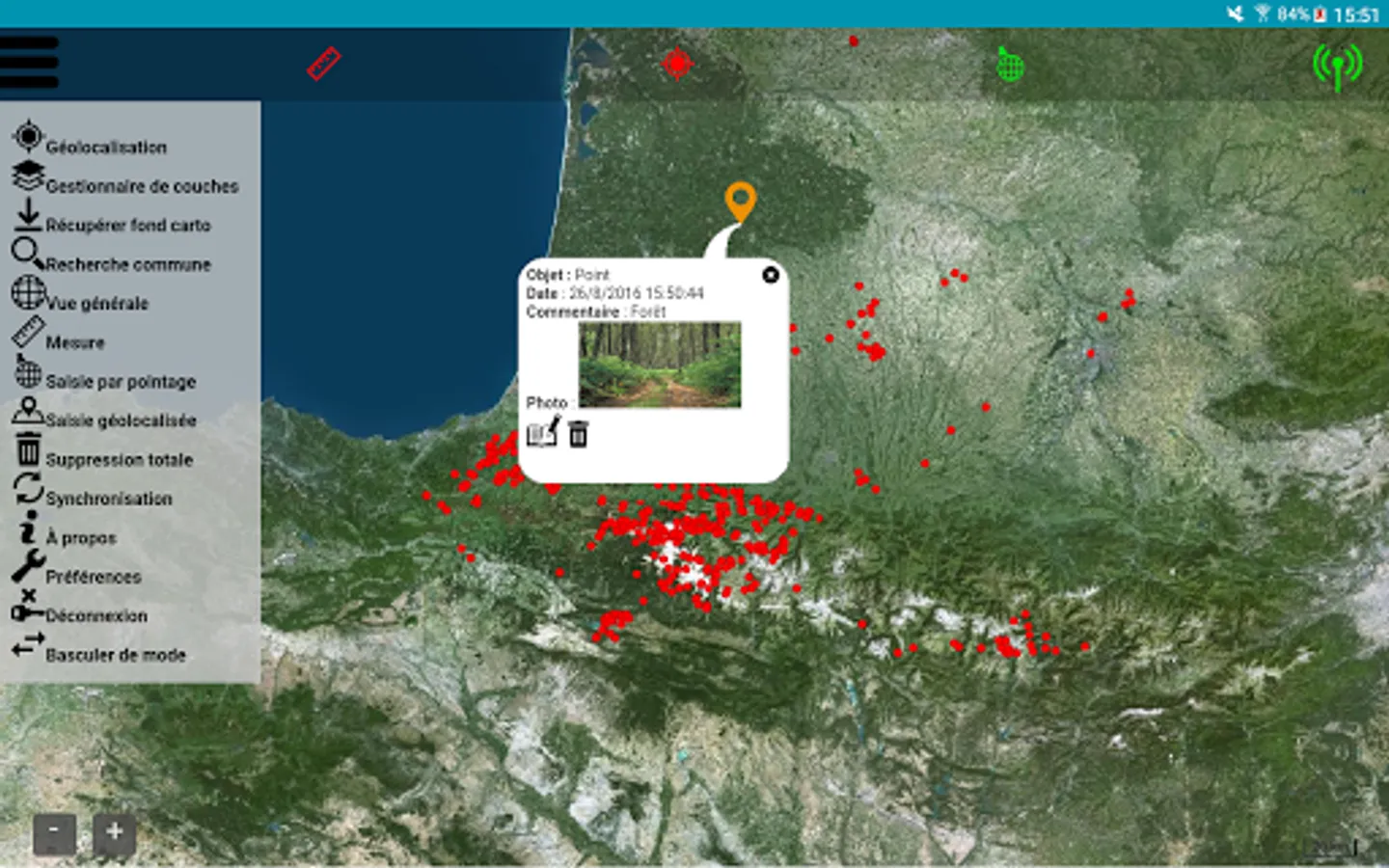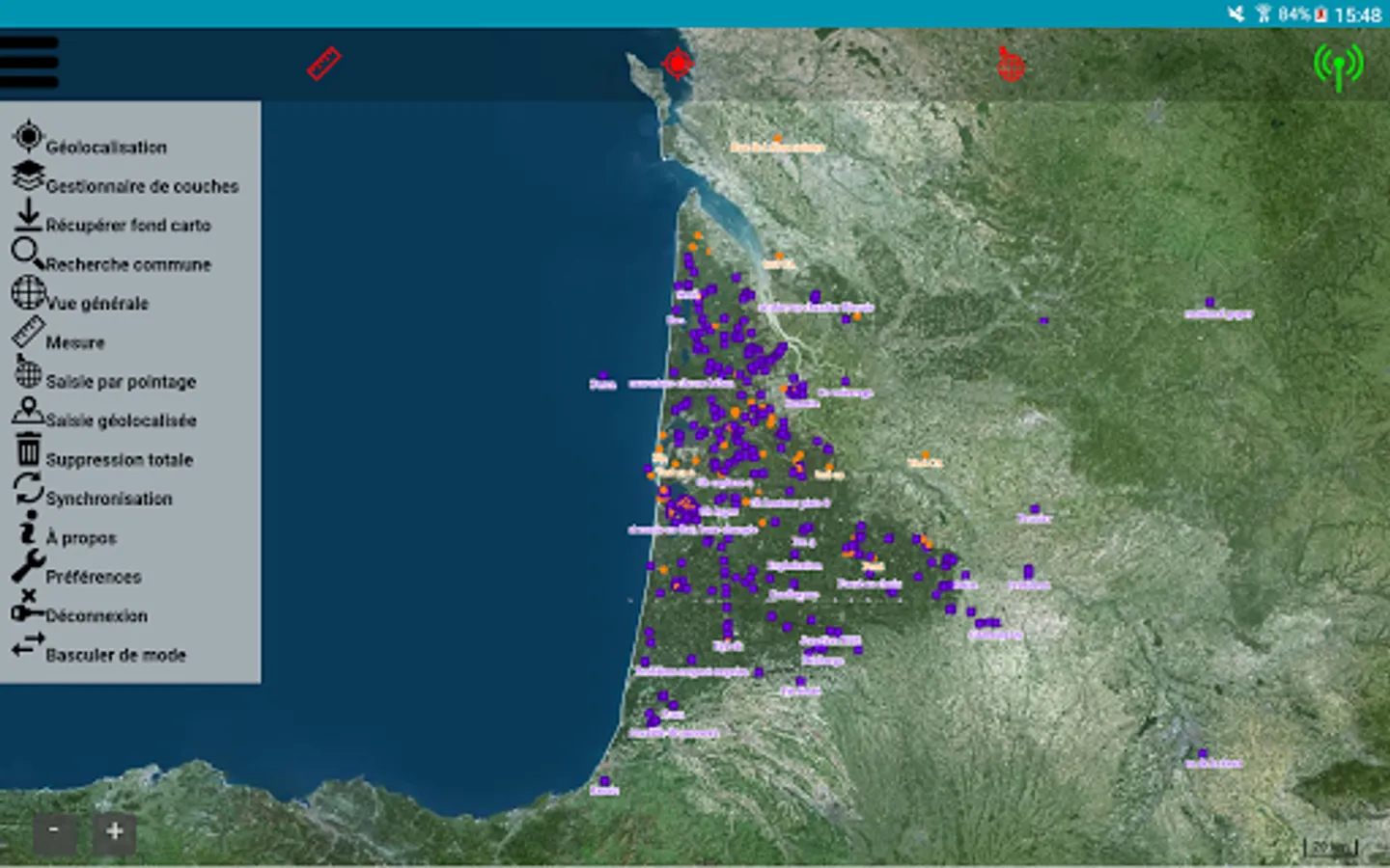 MobiGIP provides access to map data to Aquitaine and to survey location-based GPS (points) or score (points, lines, polygons).