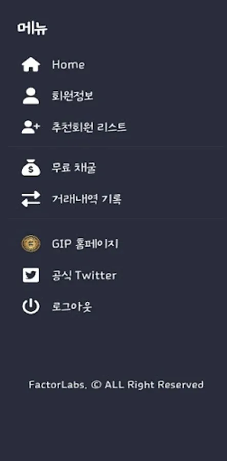 The GIP Coin free mining system was developed by Factor Labs and built on Factor Blockchain. Factor Blockchain is a next-generation coin with faster speed, wider scalability, and stronger security by compensating for the shortcomings of existing blockchain in terms of speed, scalability, and security, and introduces the free mining app of Factor Blockchain's main net coin, GIPCoin.