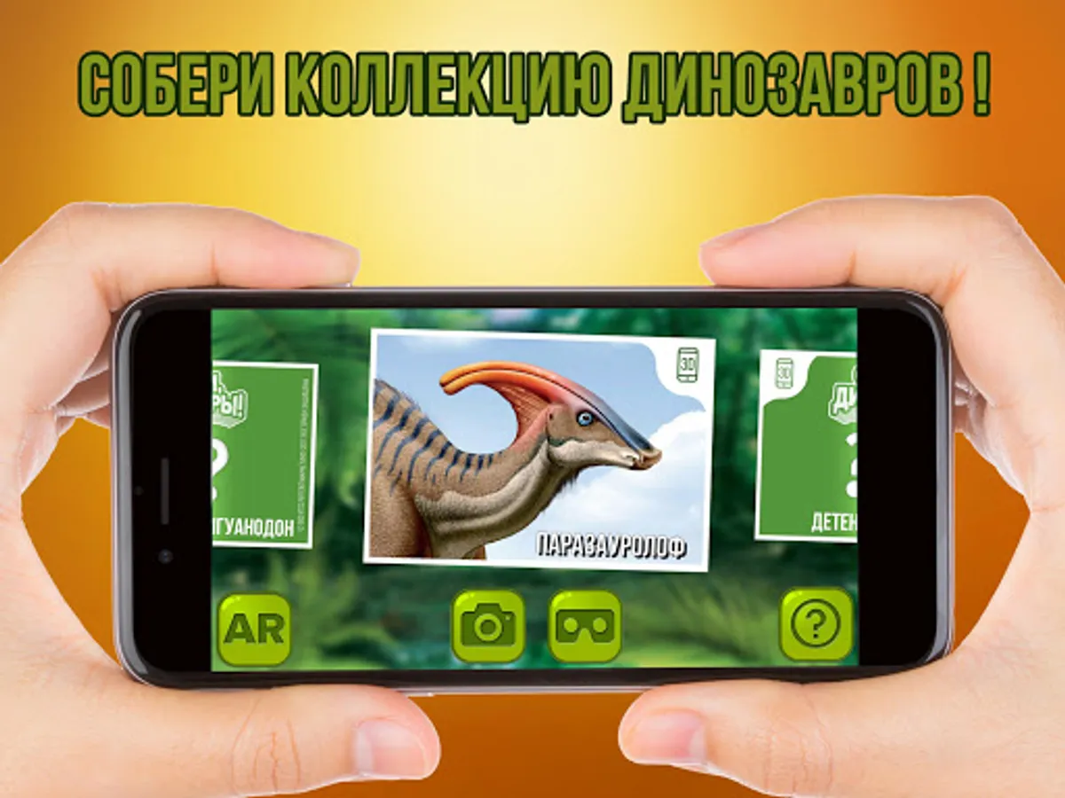 Collect virtual collection of dinosaurs, activating special 3D-sticker of hypermarkets "GIPPO". Use augmented reality to see how a dinosaur walking by your room. Start virtual reality to himself was a guest of the dinosaurs and travel back to 230 million years ago!