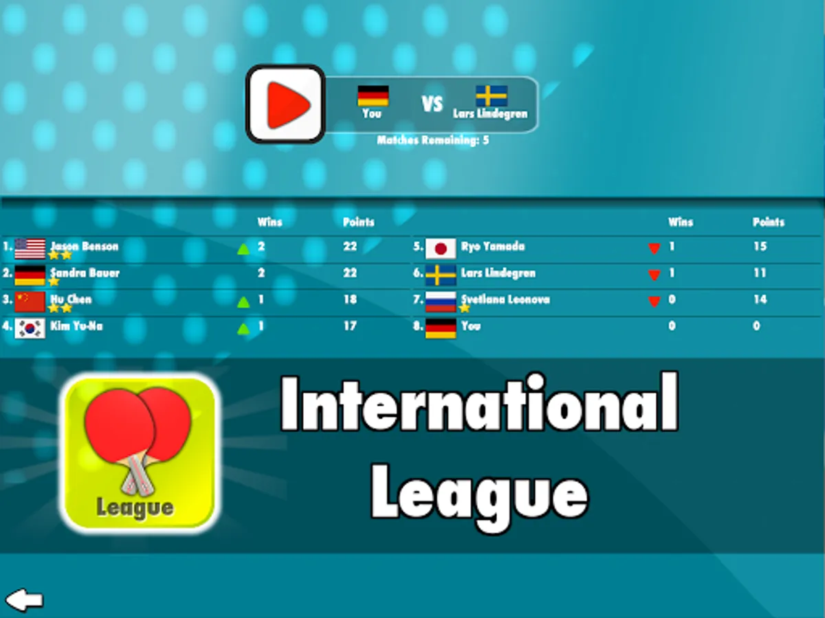 - Play a Career mode as you progress through the ranks to become a Table Tennis Champion.