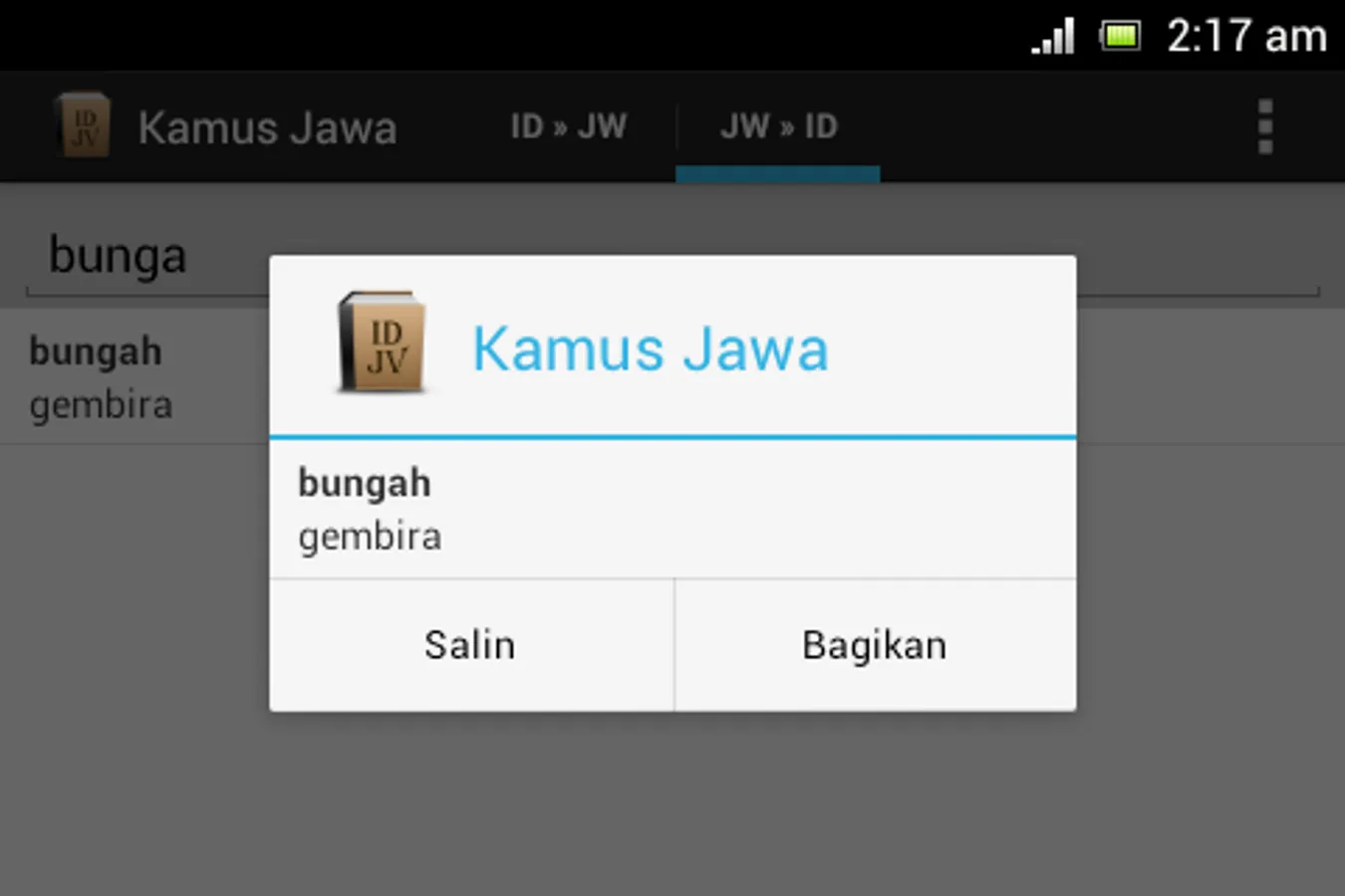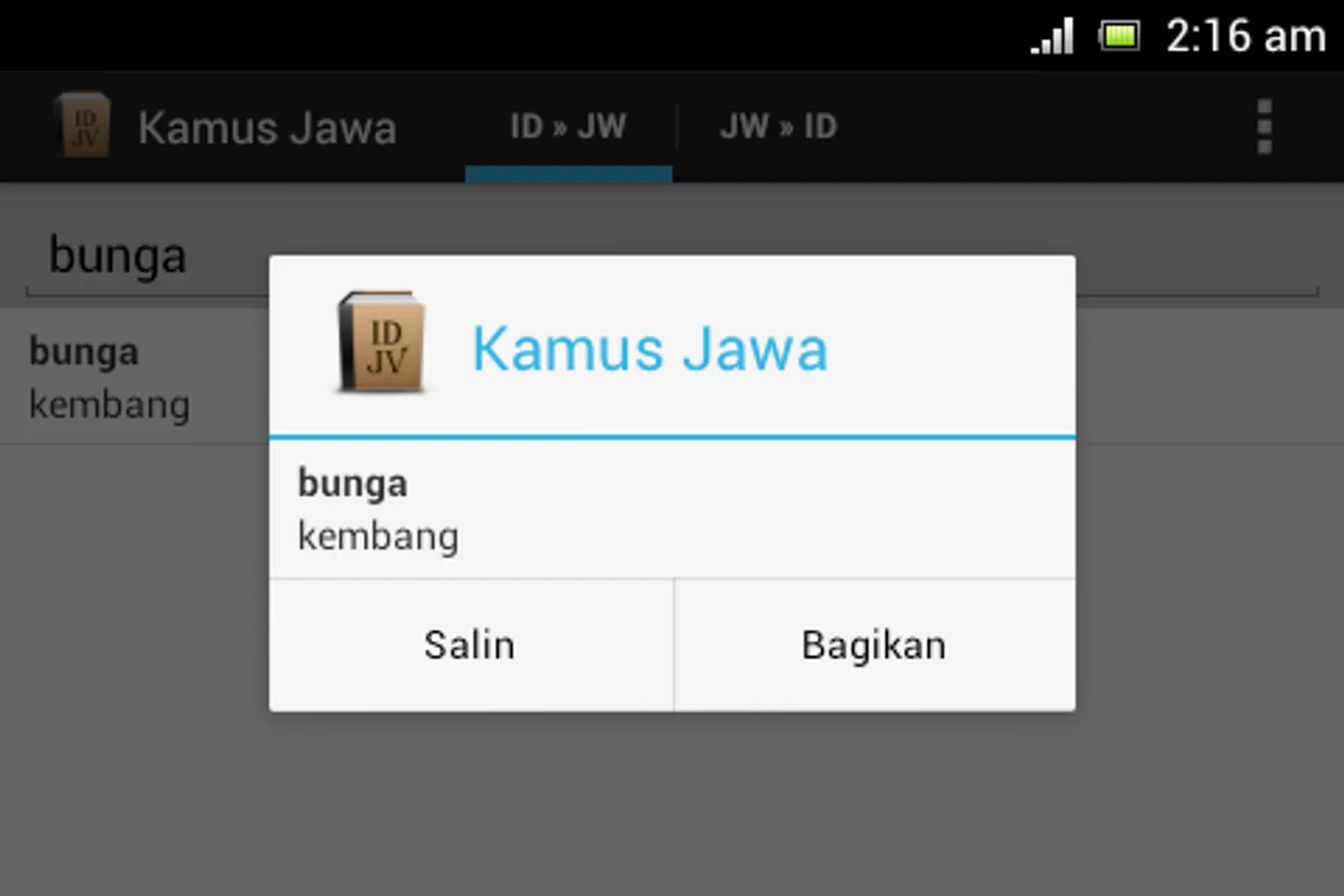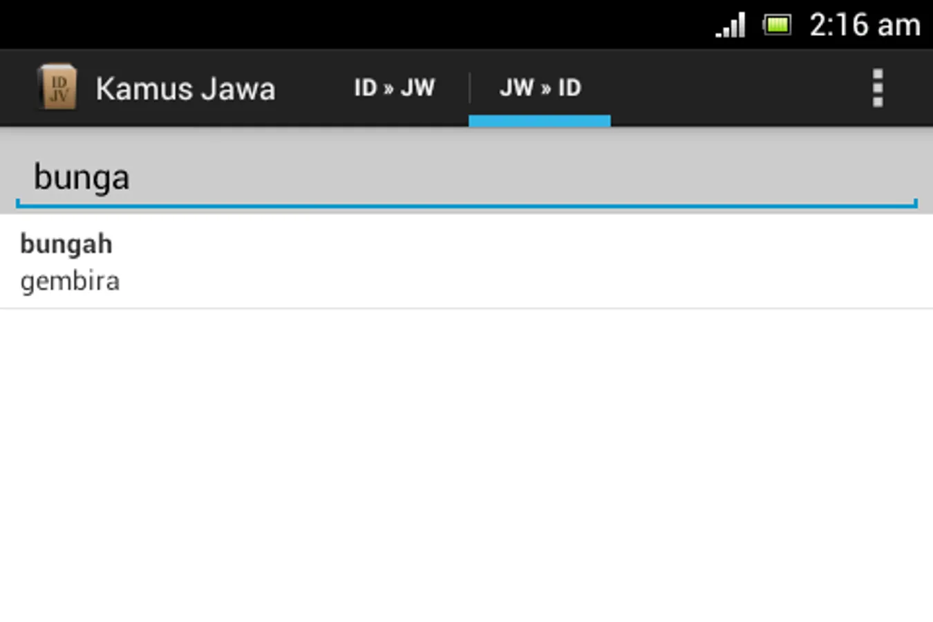 Javanese Dictionary is Indonesian - Javanese offline digital application dictionary. This application contains Indonesian words that can be translated into Javanese and vice versa.