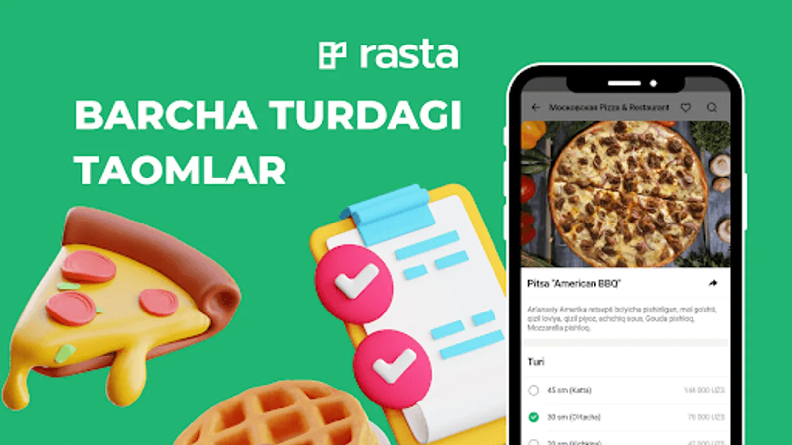 Biz sizga shahardagi eng sara ovqatlanadigan joylarni kaftingizdagi telefonga olib kelamiz. Siz buyurtma berasiz, biz yetkazib beramiz.