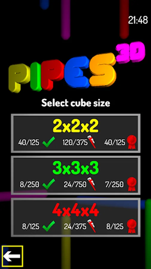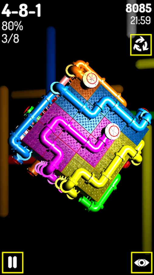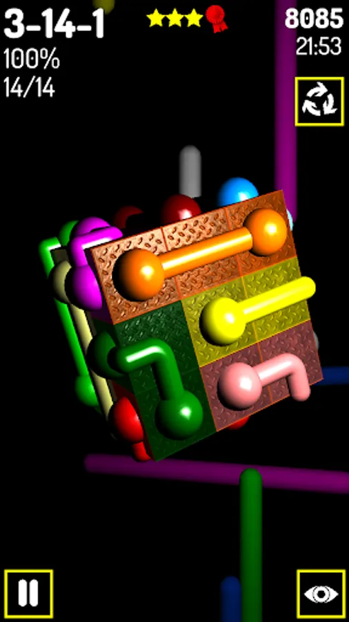 Pipes 3D is a simple, addictive, fun and challenging puzzle game which will make you think in 3D. It is inspired by numberlink aka flow type games, but instead of playing on a two dimensional plane, you get to play on a surface of a three dimensional cube. This game retains the enjoyment and simplicity of a regular flow-like games, as well as offers more challenging ways to play it for those who find regular numberlink type games just a little bit too easy.