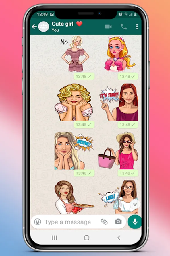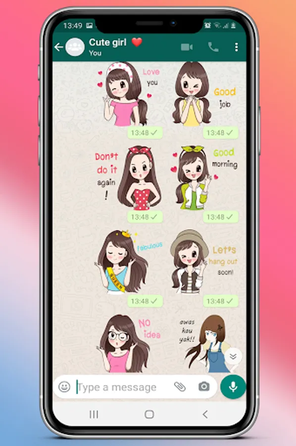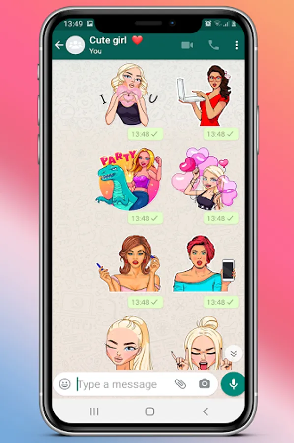 In the new WhatsApp update, they launched a new sticker update, which allowed us to bring a girly_m sticker for girls from WAStickerApps and the beautiful GIRLS app for girly m for WhatsApp sticker for girlt first, you need to install and verify the app, choose categories and select them, then click the add button WhatsApp. The full range of emojis and elegant love will explain your heartfelt feelings as closely as possible.