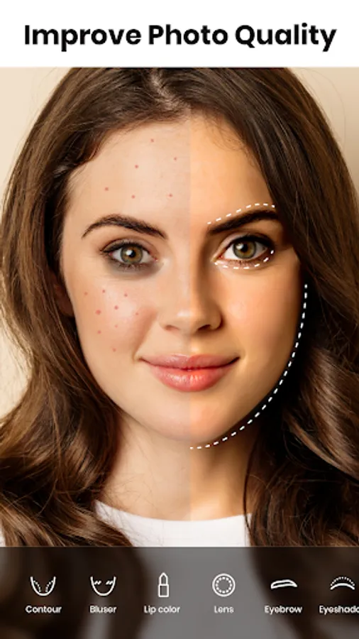 • You can do any kind of makeup with the help of the app from changing the shape of your eyebrows to applying lip color.