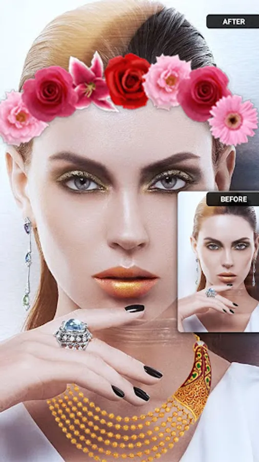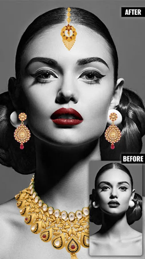 - Save your beautiful creation in your photo gallery jewellery photo editor app album