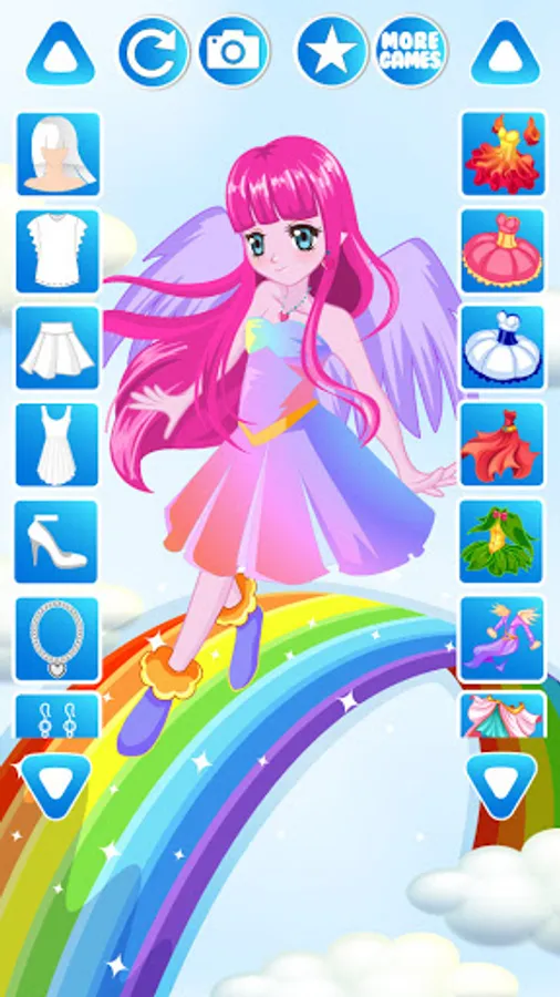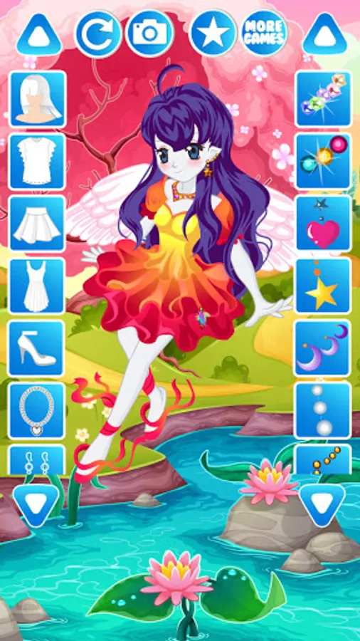 In this fairy dress up game for girls, you can create the looks of your favorite little fairies from the famous cartoons, or you can put your fashionista and stylista skills to the test and imagine a new character.