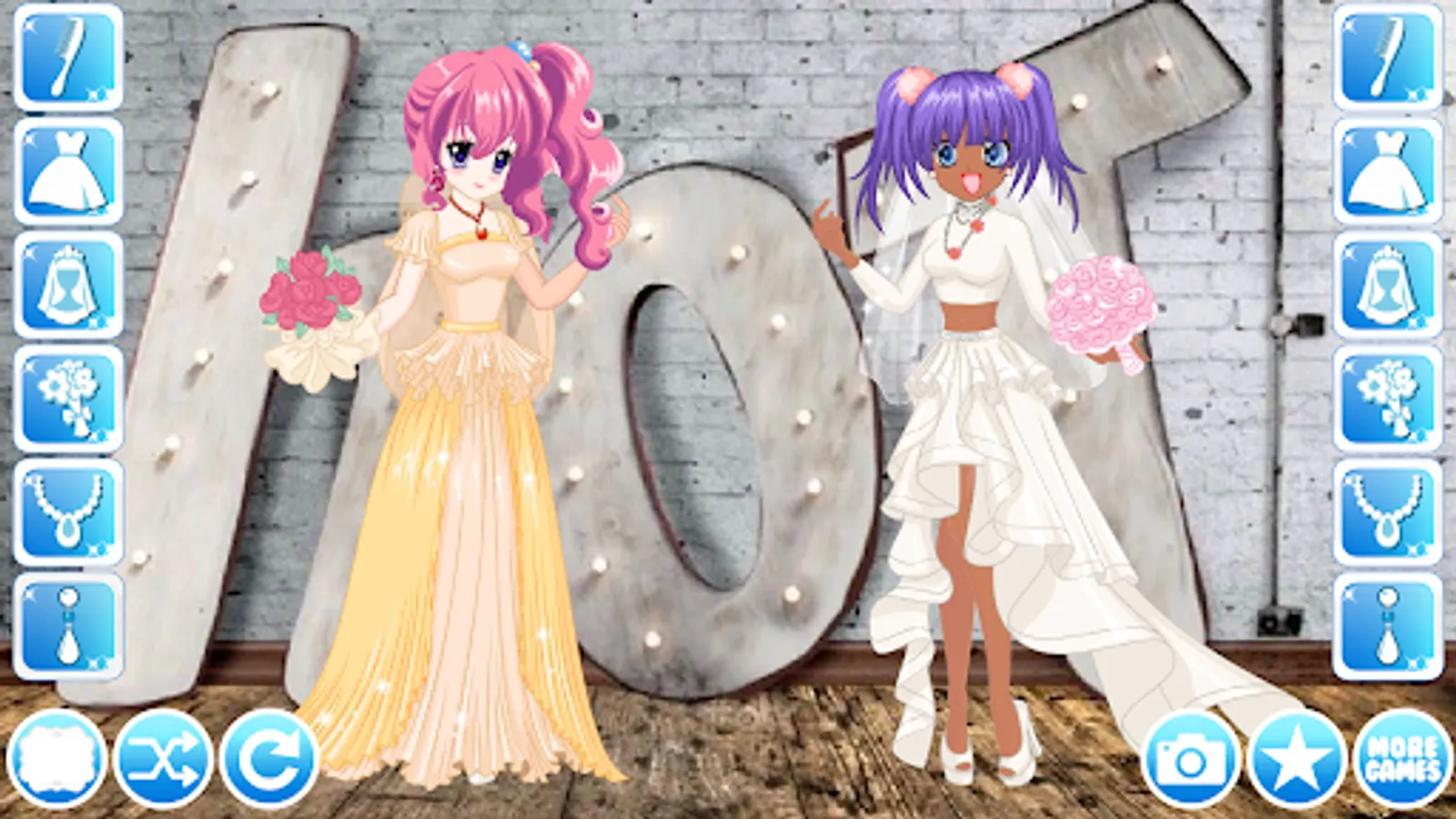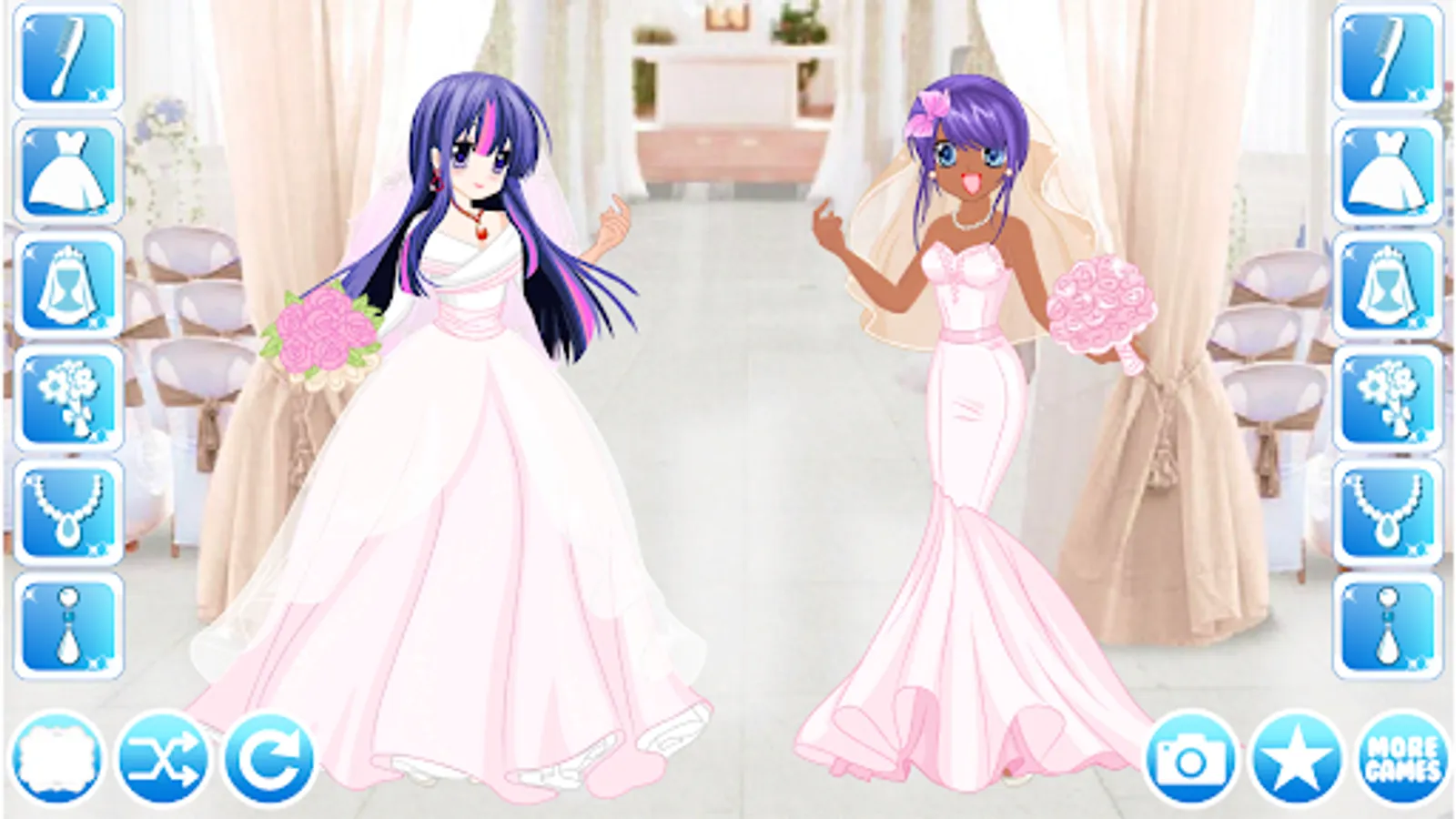 If you like Wedding Games and Bride games come and browse through a impressive selection of gorgeous dresses, high heeled shoes and glittering accessories and feel free to pick your favorites in order to dress them up for the big day.