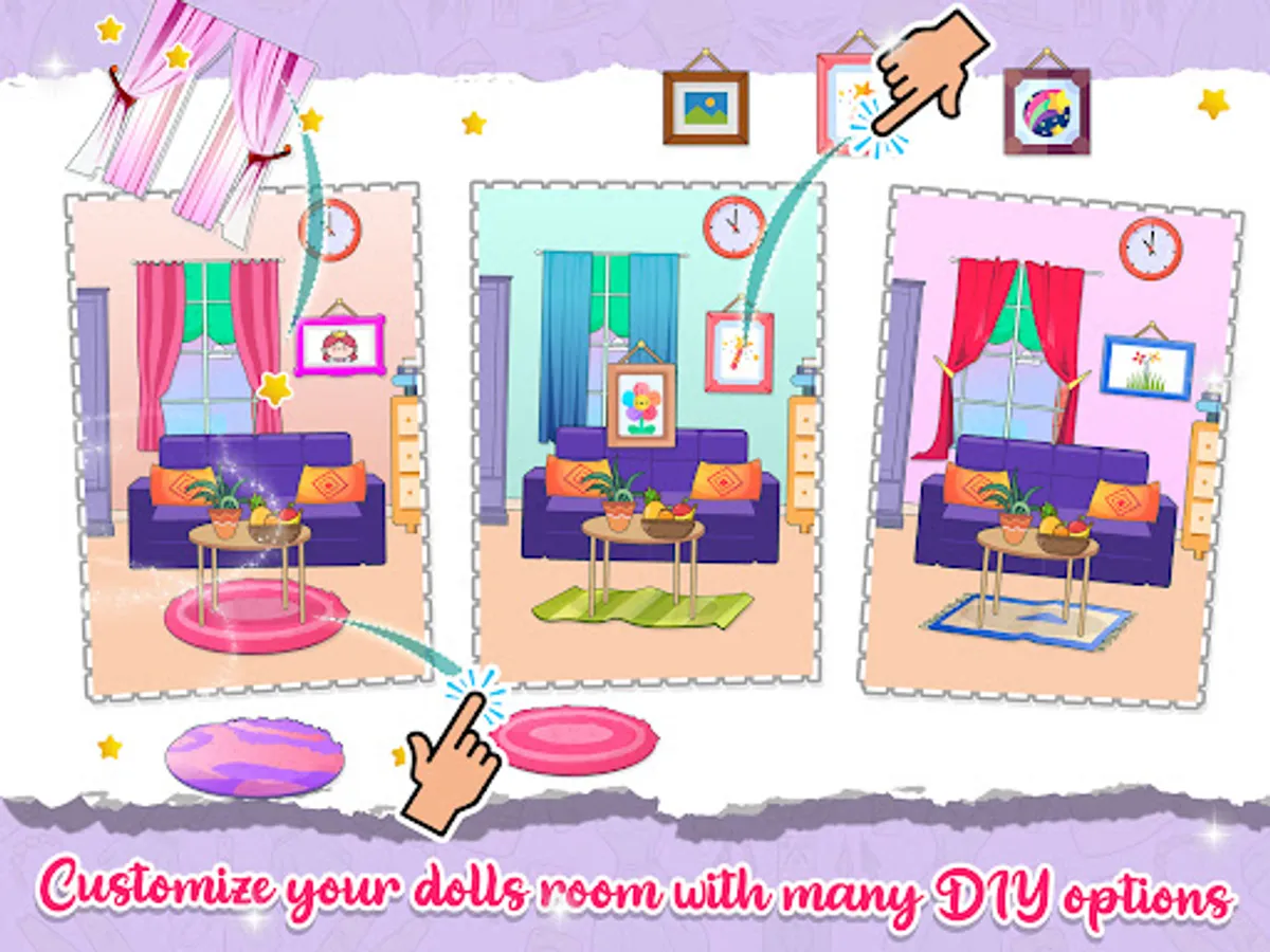 Create and decorate your own virtual rooms for cute paper princess. Select a room layout or choose from a range of furniture, decorations, and accessories and create a personalized and stylish living space for the paper doll.