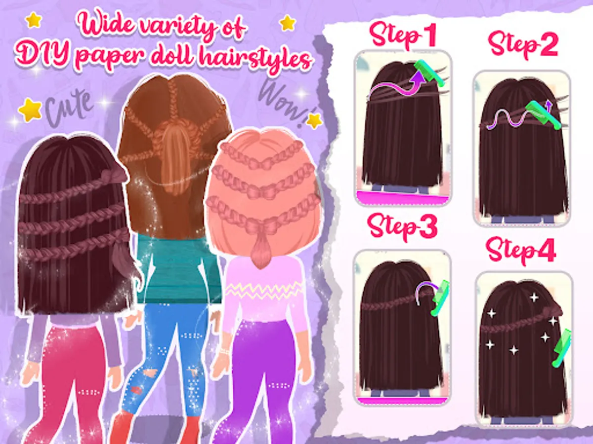 Help the paper doll princess to choose from a range of hairstyles, such as braids, ponytails and more, to create a unique and stylish hair look. Explore different hairstyles and hair colors.