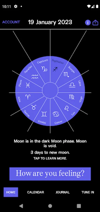 Learn about the moon phases with It’s just a Phase®. Our app features a calendar with moon phases and zodiac information to help you to reflect and plan. Sign up to have access to a diary to keep track of your intentions and your praxis.