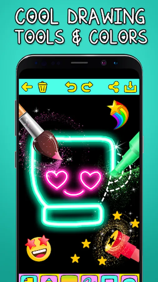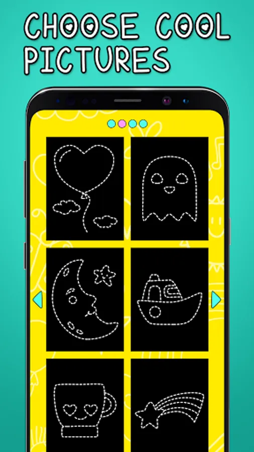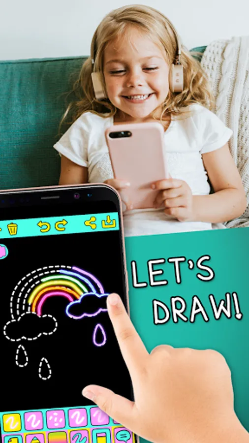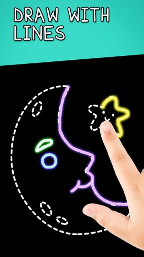 Draw for fun! Drawing game for kids with dot tracing worksheets: glow paint, neon colors, draw by finger. Image editor - draw on your photo in Easy kids drawing game!