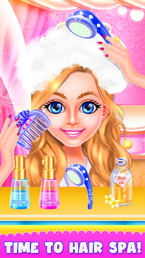 Become a makeup artist or hairdresser in this dress up games as the next level is all about makeover. This game includes many makeup spa items like blush on, eyeshadow palette, lipstick, mascara, eyeliner, contact lenses, etc that you will love. Let's go to the nail salon and get yourself a manicure pedicure. Then choose the design for your nails after getting a menicure pedicure from a nail salon. Create a royal look for yourself and prove your makeup skills as a makeup artist through this popular girls games. After makeover, get dressed yourself with marvellous outfits in various colours. You can select any outfit according to your own choice. Do not forget about hairstyling. Become a hairdresser and do hairstyling of mall girl. Then, select jewellery accessories like earrings, necklace, crown etc by matching your dress. Select a background to complete this chic games.