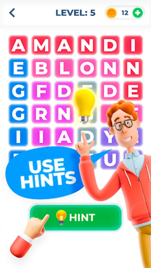🔸 Use hints to help you find words!