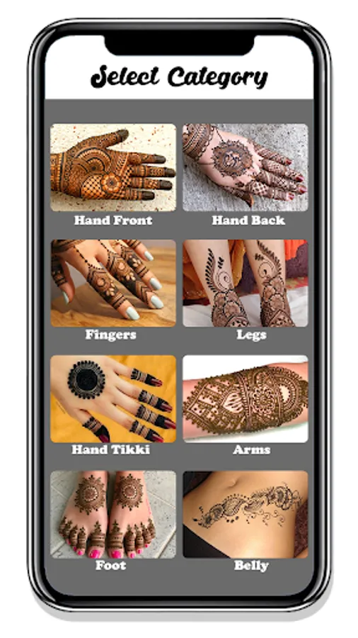 Choose from categories like front hand, back hand, finger, and leg designs, as well as bridal, stylish, Rajasthani, Eid, tikki, kids, and tattoo designs. Our app has everything you need to make your hands look as pretty as ever.