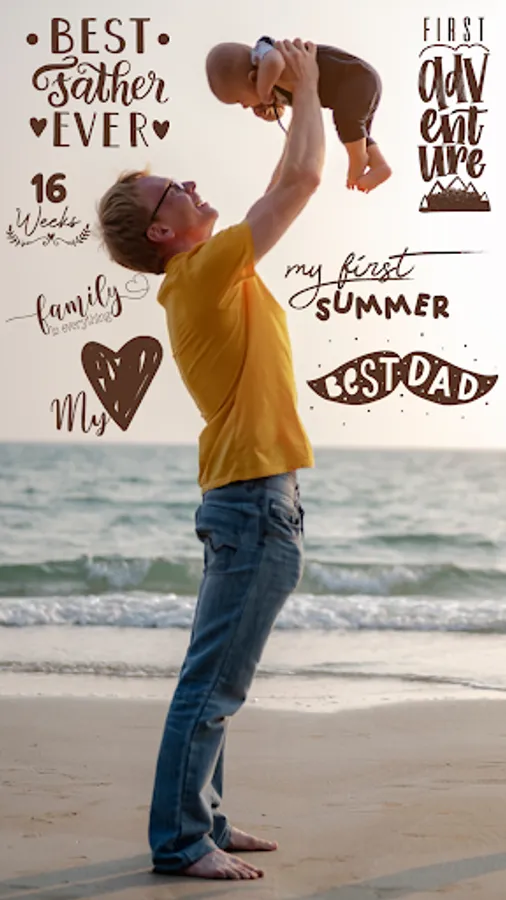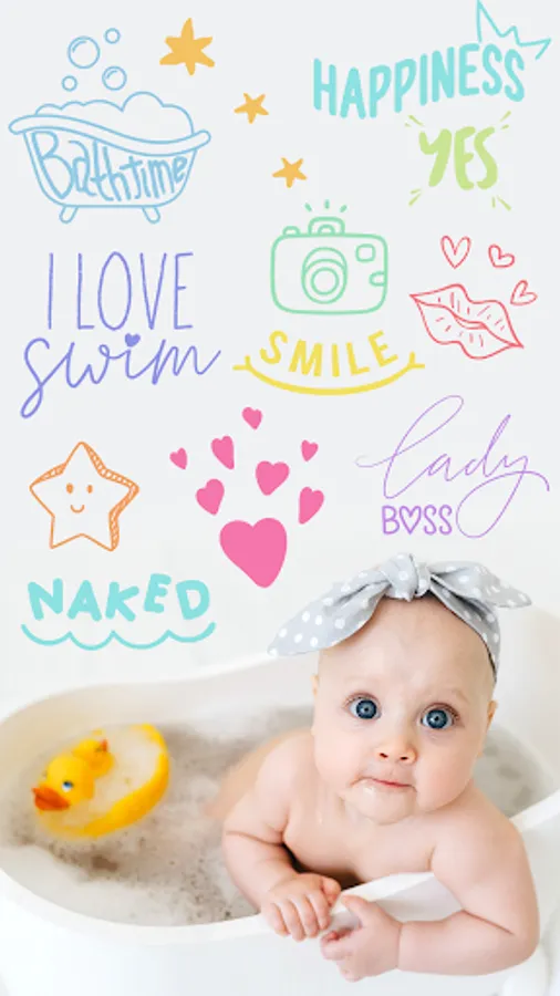 Baby photo stickers - add cute phrases and text on baby photos. Different fonts designed to make your baby photos stand out