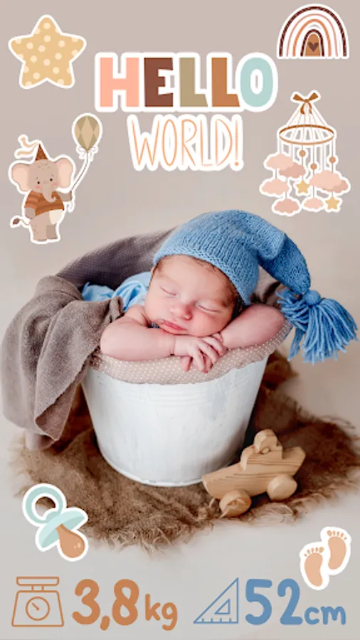 Create photo stories with a free baby photo editor. Baby pics app for moms, baby story camera, pregnancy photo app. Cute baby photo stickers. Design pregnancy photos and baby's born story easy and fast