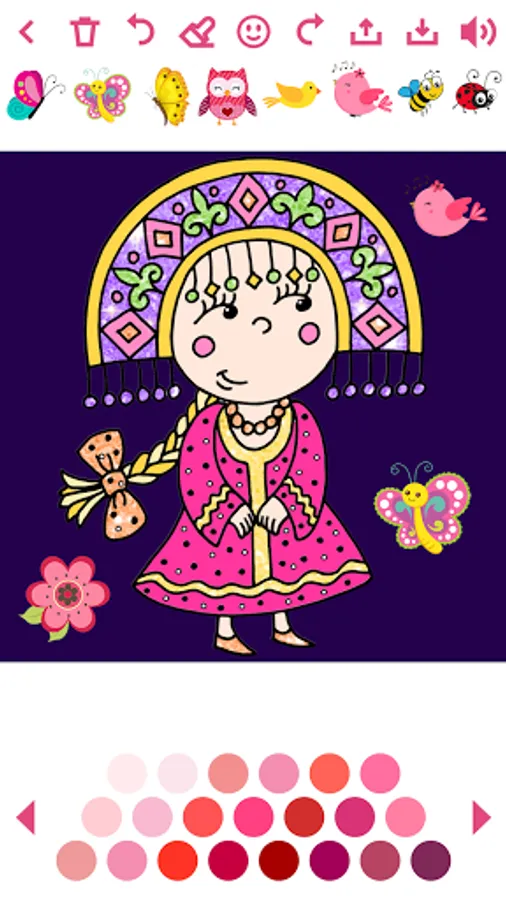 ❤ Игра Раскраска и сказки (Russian tales - Coloring game) - 350+ красивых оттенков, включая палитру с блестками