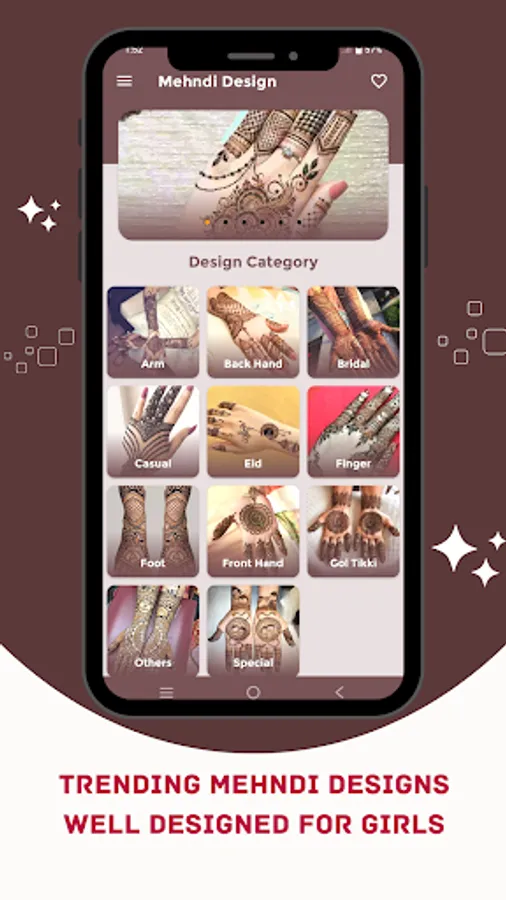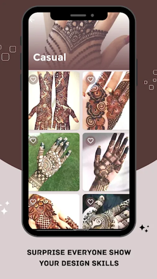 Discover an enchanting gallery of Mehndi Designs, featuring a diverse collection of Henna art and patterns for every occasion. From traditional bridal designs to trendy festival patterns, this app offers a rich variety of intricate artwork. Unleash your creativity and adorn your hands with the beauty of Henna. Easy-to-use and regularly updated with fresh designs, our Mehndi app is a must-have for any Henna enthusiast or artist. Download now and immerse yourself in the world of mesmerizing Mehndi!