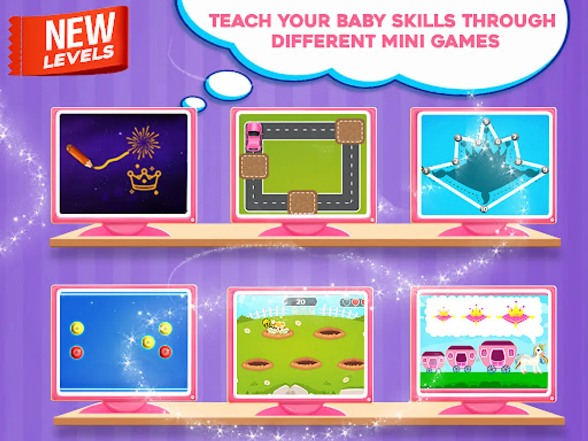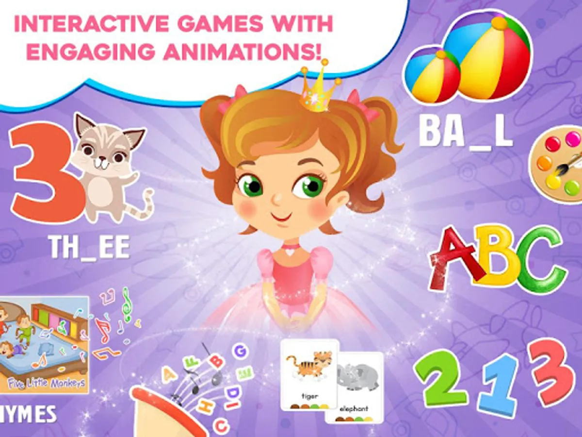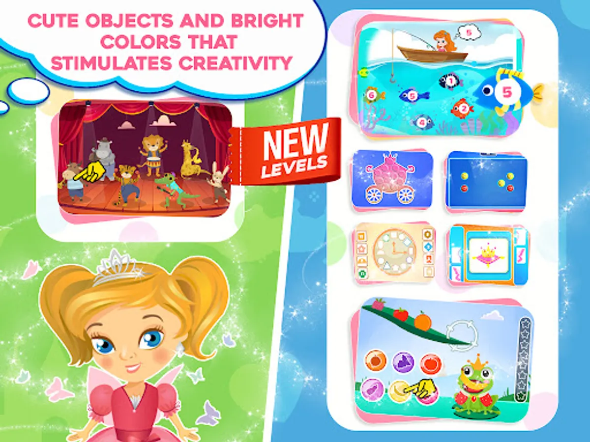 Play with Princess in this Adventures Puzzles Game. A cute computer for girls that would change the way they learn and play... Learn Shapes, Colours, Math games, spelling games & many more games for all the beautiful princess! Let the journey begin, in a magical fairy tale kingdom of princesses!