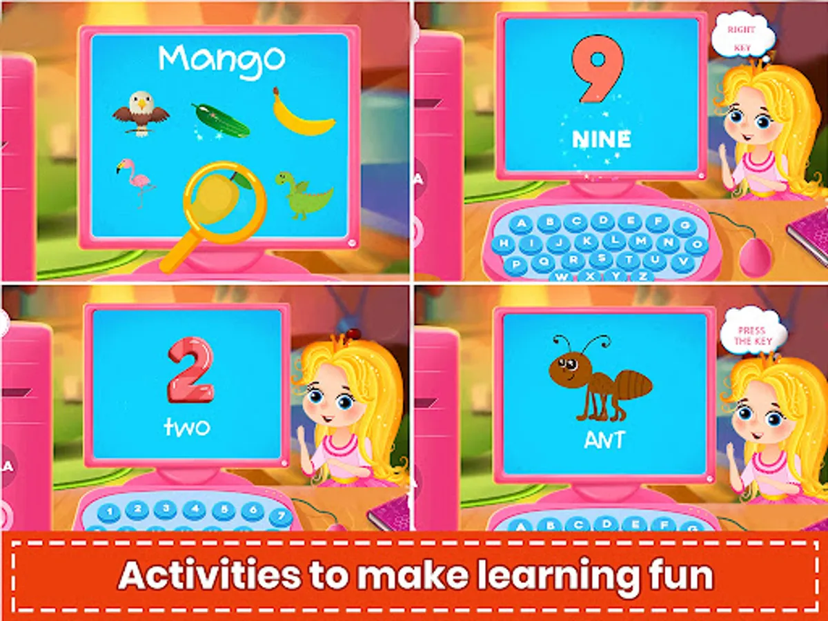 Explore fun and exciting educational learning games for girls! A Pink themed Cute and Girly Computer for your Princesses!