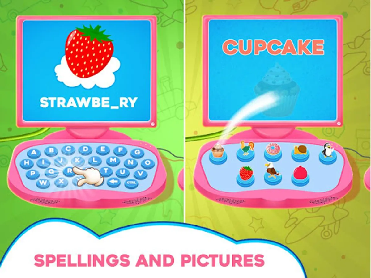 Learn English Spellings - Simple spelling mini games on how to improve your spelling. Explore some very exciting Fun Ways to Learn Spelling Words. Sing and play famous rhymes and songs in your pink computer.
