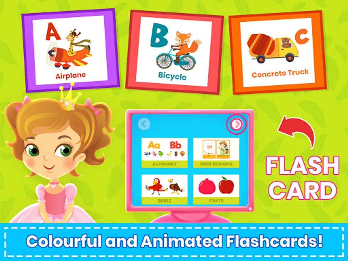 Helps you learn animal names with fun games and activities! Learn animals vocabulary/ animal names through pictures. Collection of hundreds of Colourful flashcards specially designed for curious little minds of your princesses.
