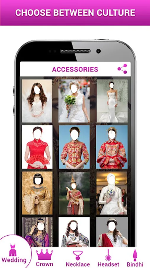 Create stylish looks with a bridal suit photo editor. You will be surprised to see the after effects of women dress photo editing app. Wedding photo editor has many accessories as well like crown, necklace, headset & bindhi which gives best options to design a wedding dress. This is the best accessories photo editor app for girls. Dress up like a bride with just one tap with our costumes photo editor. Royal bridal suit photo changer is a very easy and useful application.