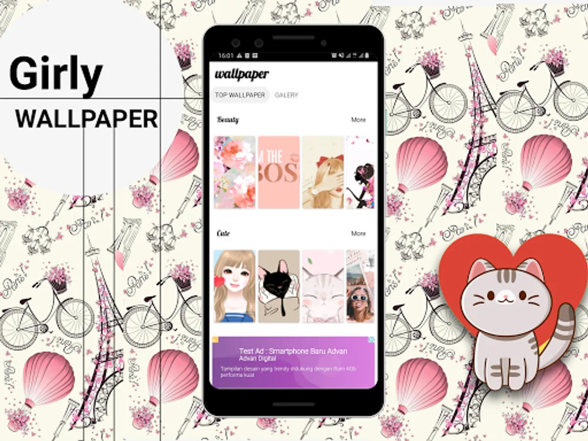 Girly Wallpaper is an application that provides a large collection of quality images that you can use as wallpaper on your mobile. This application will definitely be a favorite choice for girls who are bored with the default wallpaper display found on their cellphones, because this application provides a variety of cute and elegant girl images.