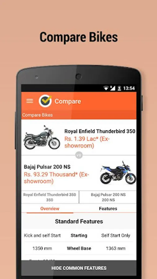 ✔ Bike Comparison – Explain better features of a bike to your customer. Comprehensive Bike comparison feature.