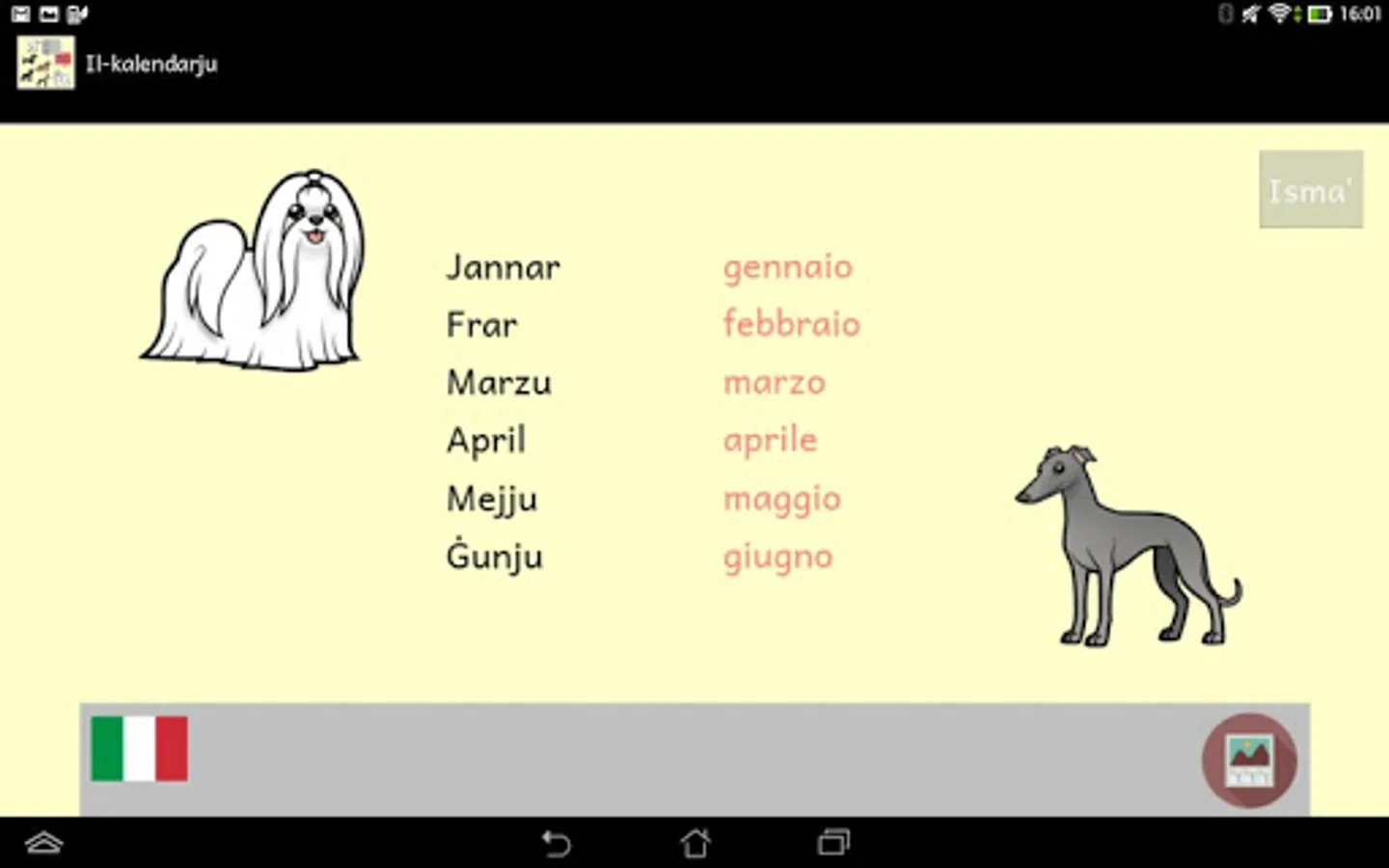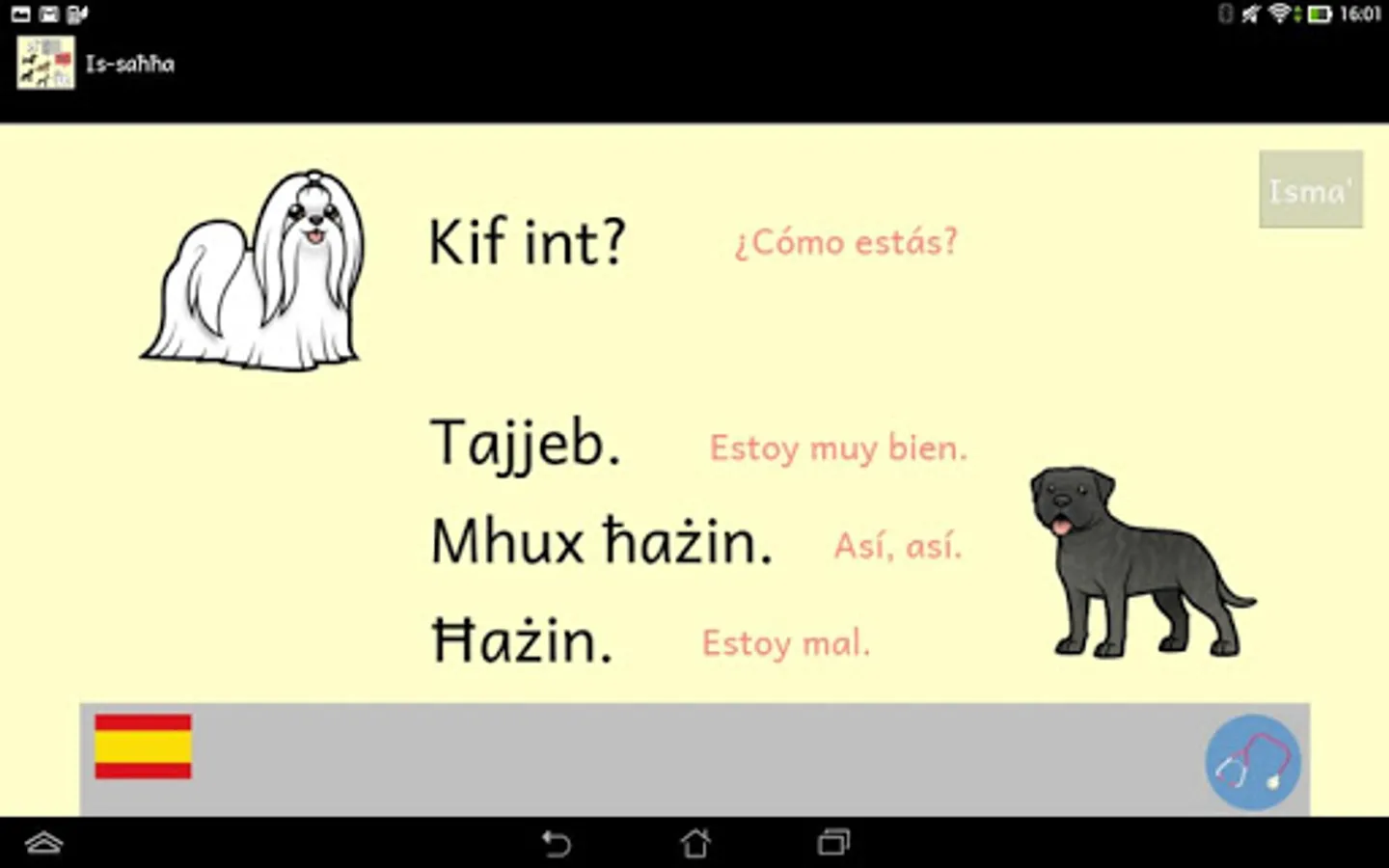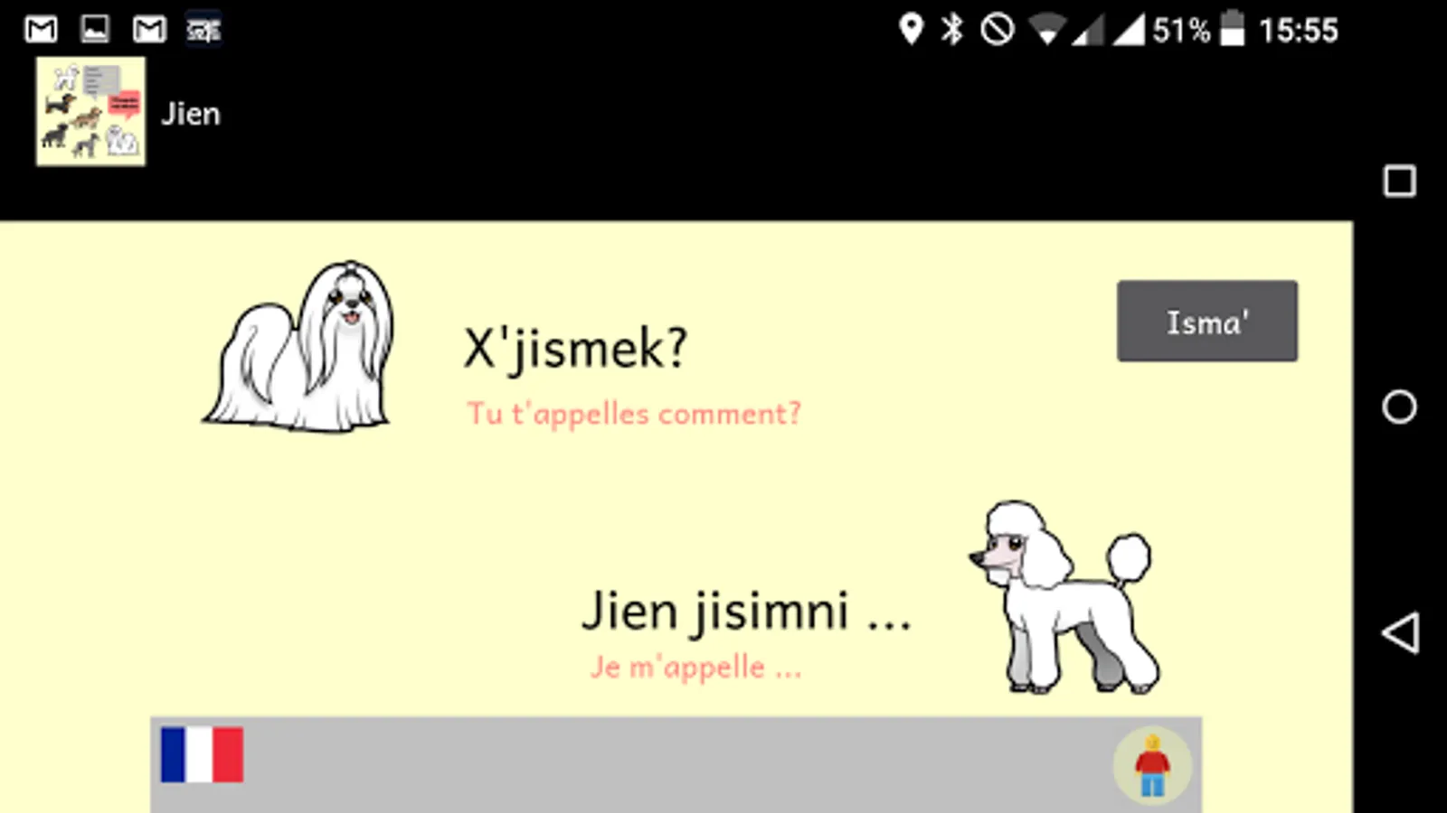- Languages: translation of words and phrases from French, German, English, Italian and Spanish to the Maltese language.