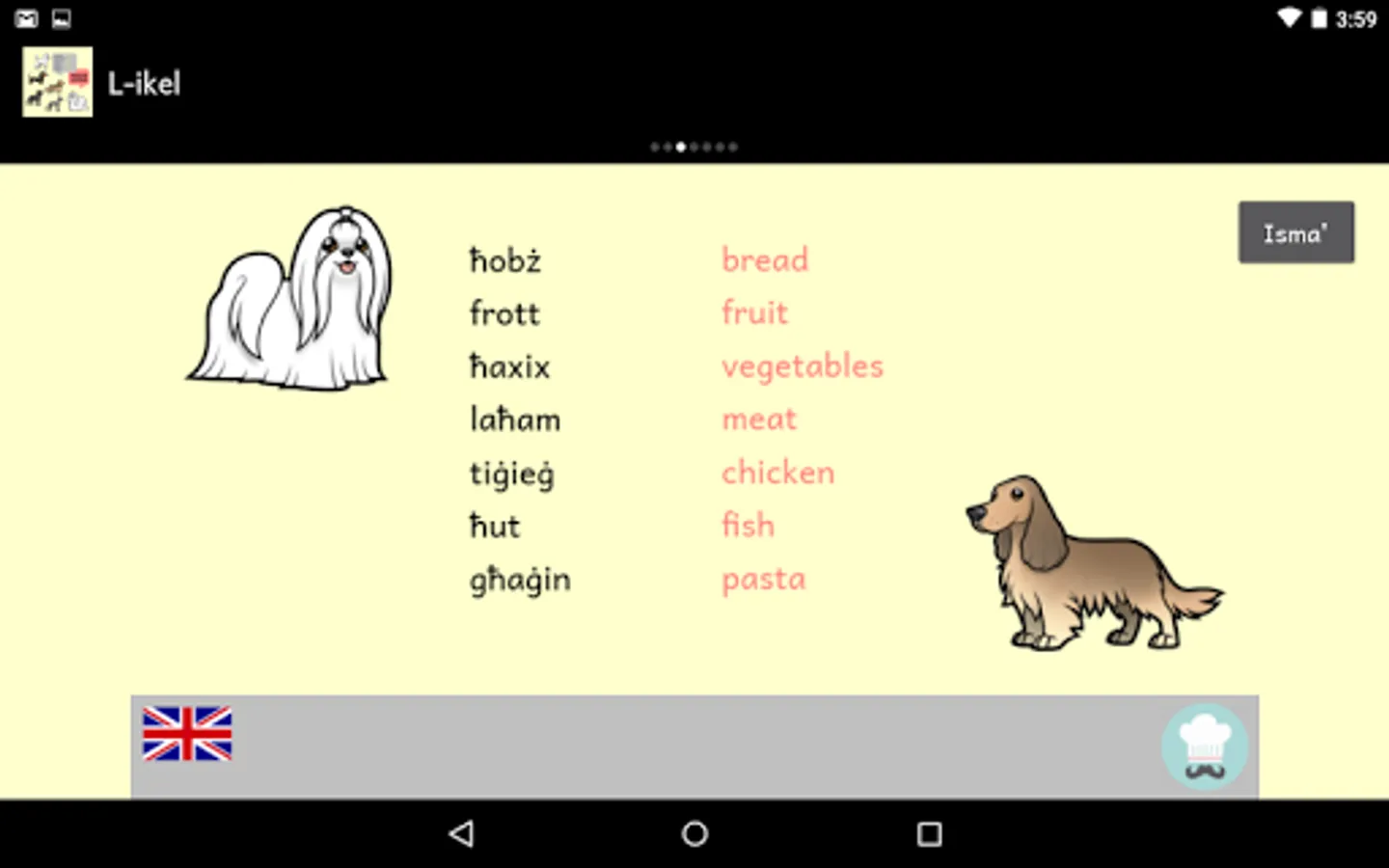 - Il-qari: meta tagħfas il-buttuna tas-smigħ tisma’ l-vokabularju moqri.
