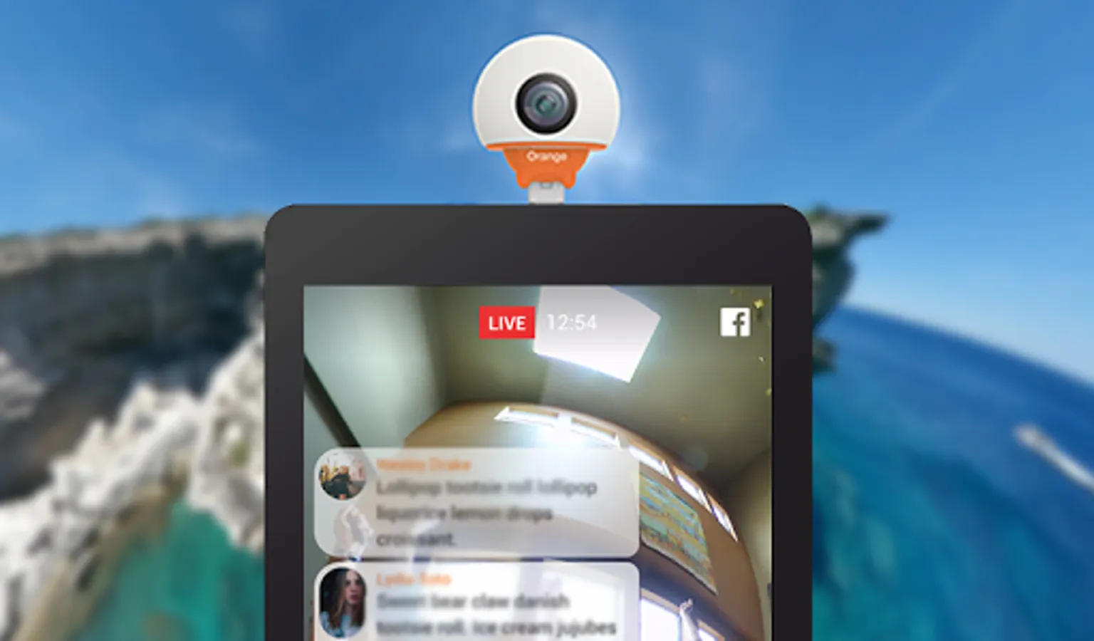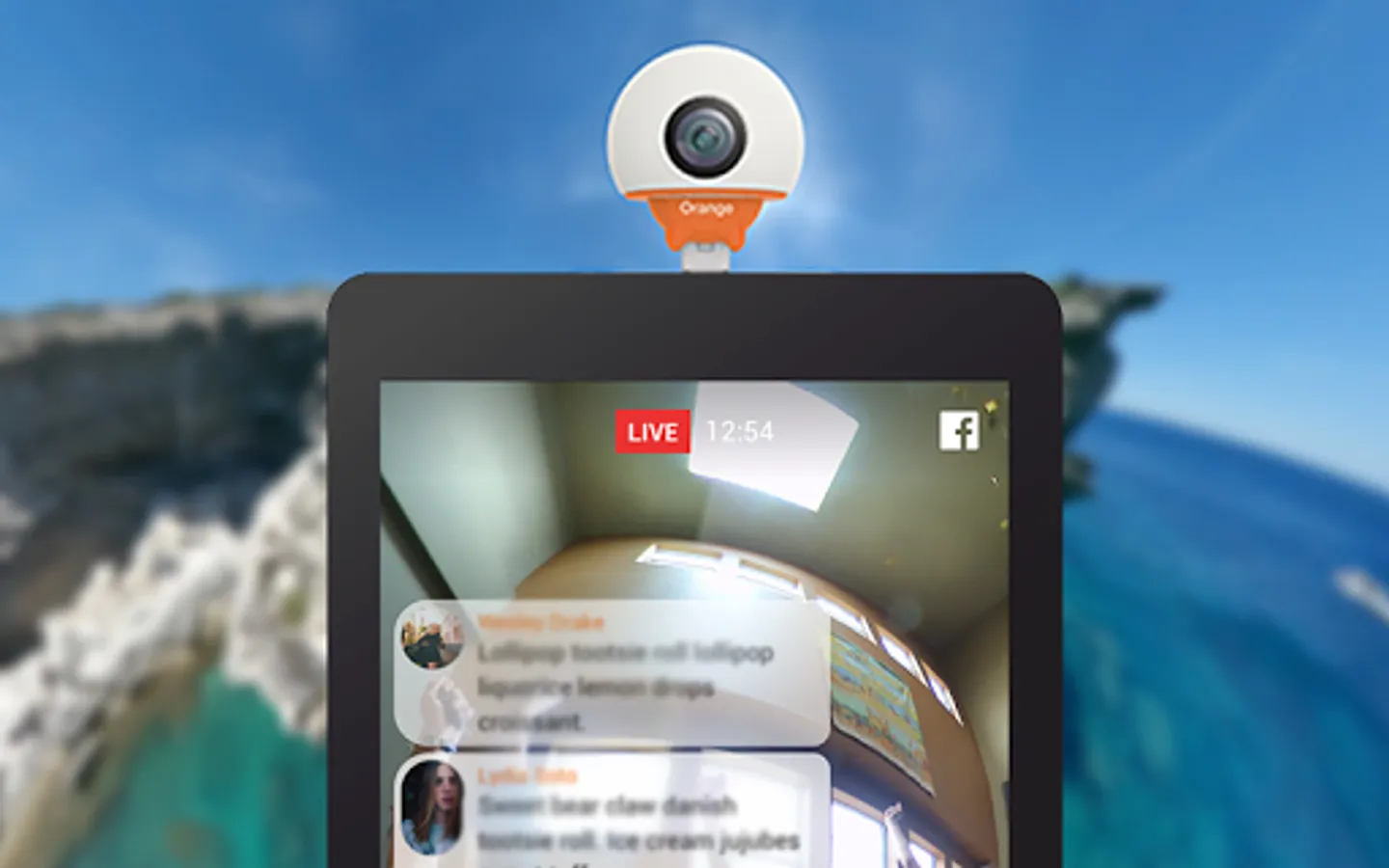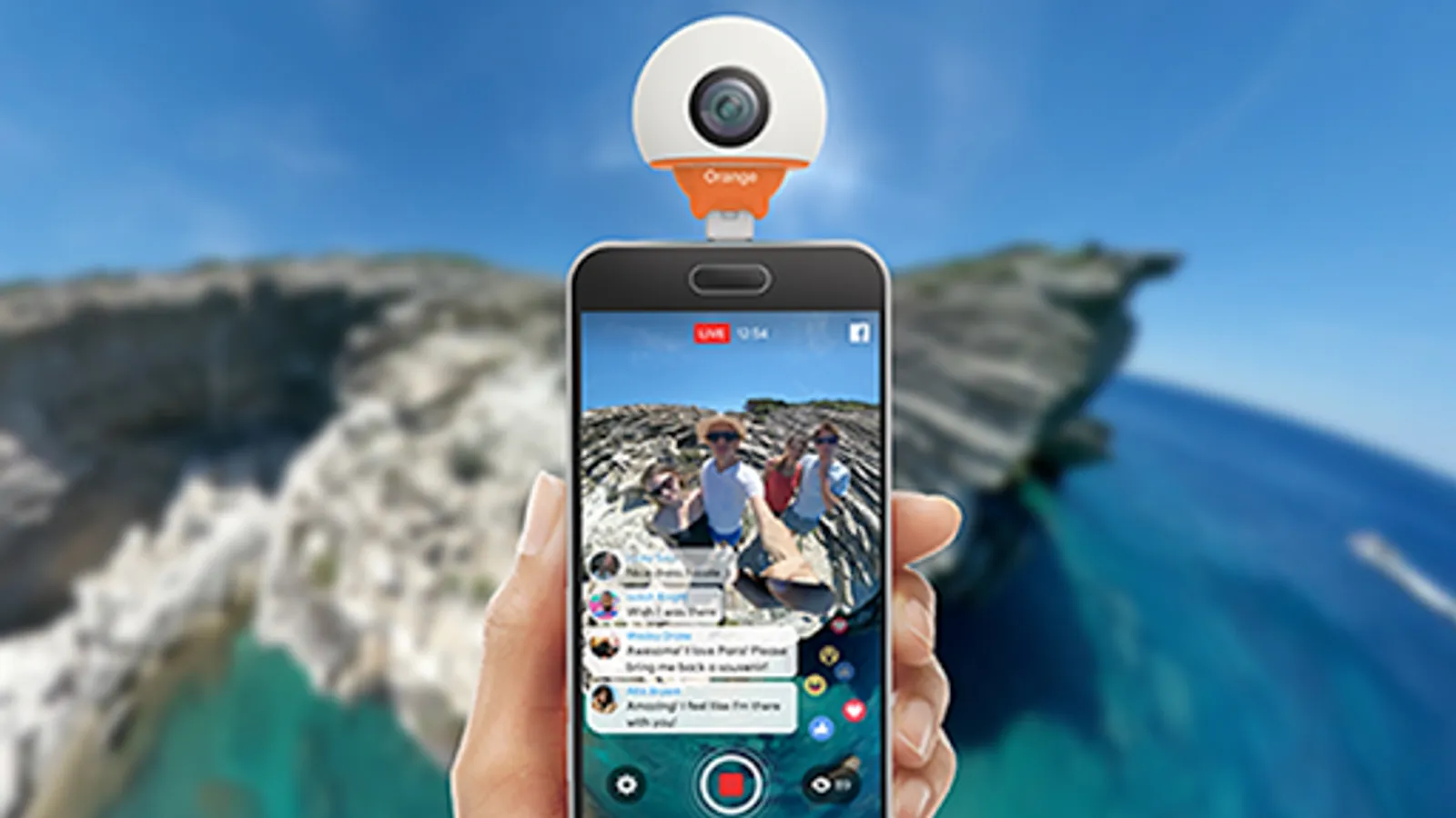 The Orange Live Cam app will also let you live stream in 360 directly to Facebook and Periscope