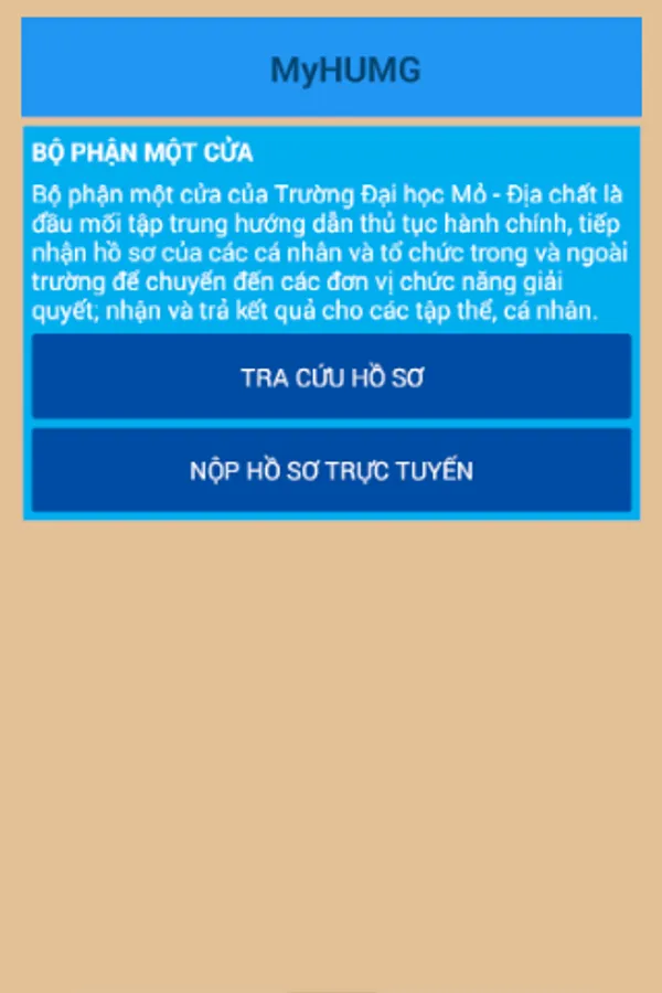 MyHUMG cho phép xem kết quả thực hiện các thủ tục hành chính đã nộp, đặc biệt là xem được quá trình xử lý, tình trạng cụ thể đang ở phòng nào, ai đang xử lý và khi nào có kết quả để đến lấy.
