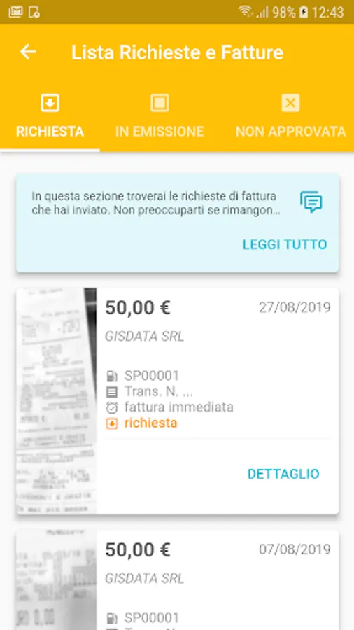 - you can see in real time the status of your requests until the display, if enabled, of the bill issued for you